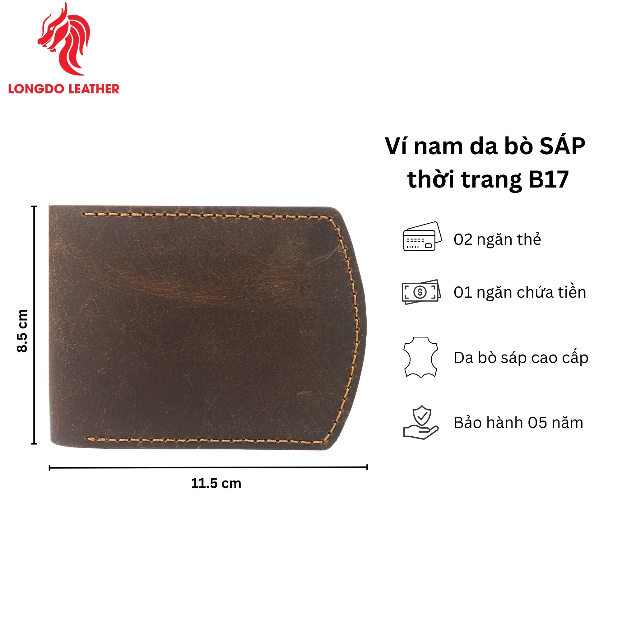 Ví da nam mini da bò thật – Bảo hành 5 năm – Hàng chính hãng thương hiệu Longdo Leather – B17